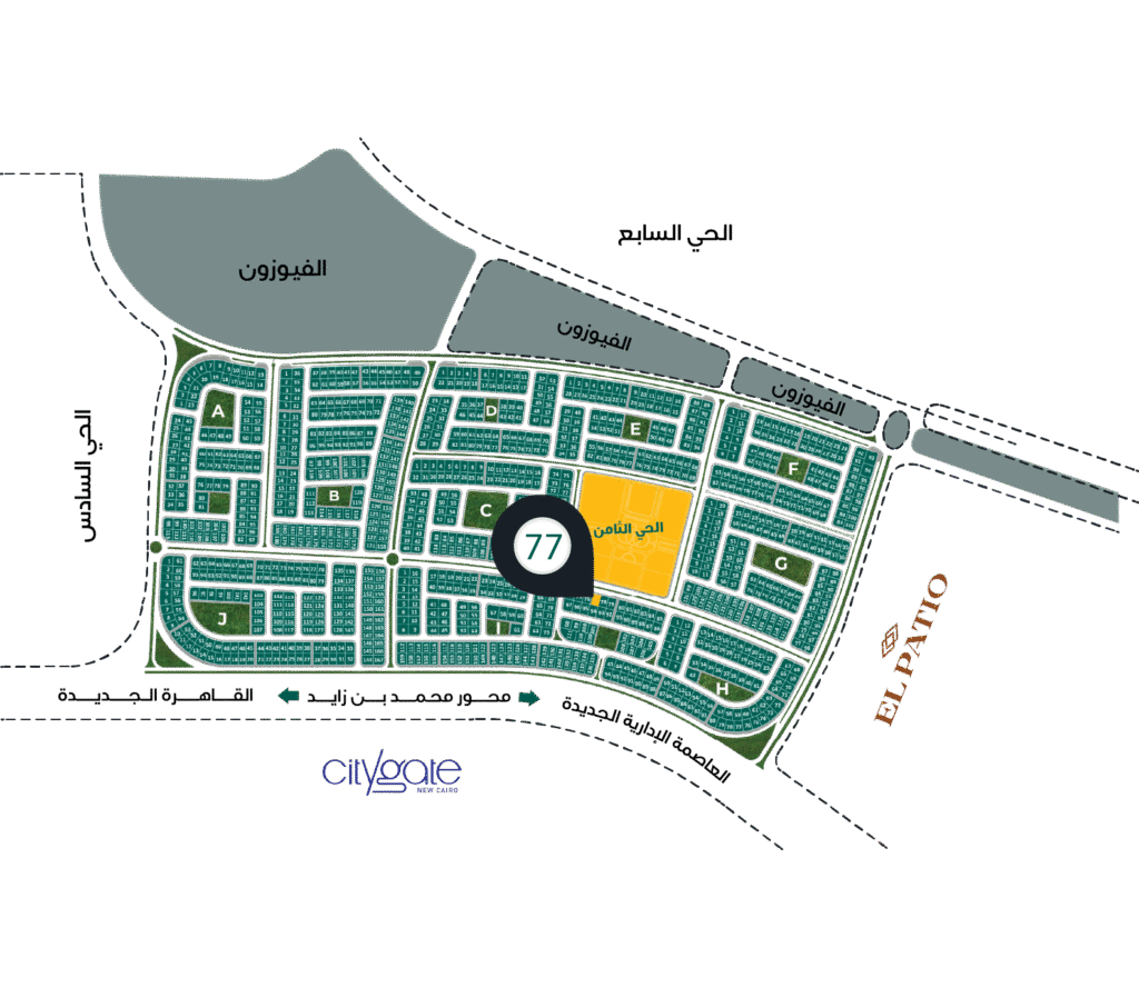 يقع المشروع في الحي الثامن – بيت الوطن على شارع رئيسي بعرض 40 متر، بالقرب من: